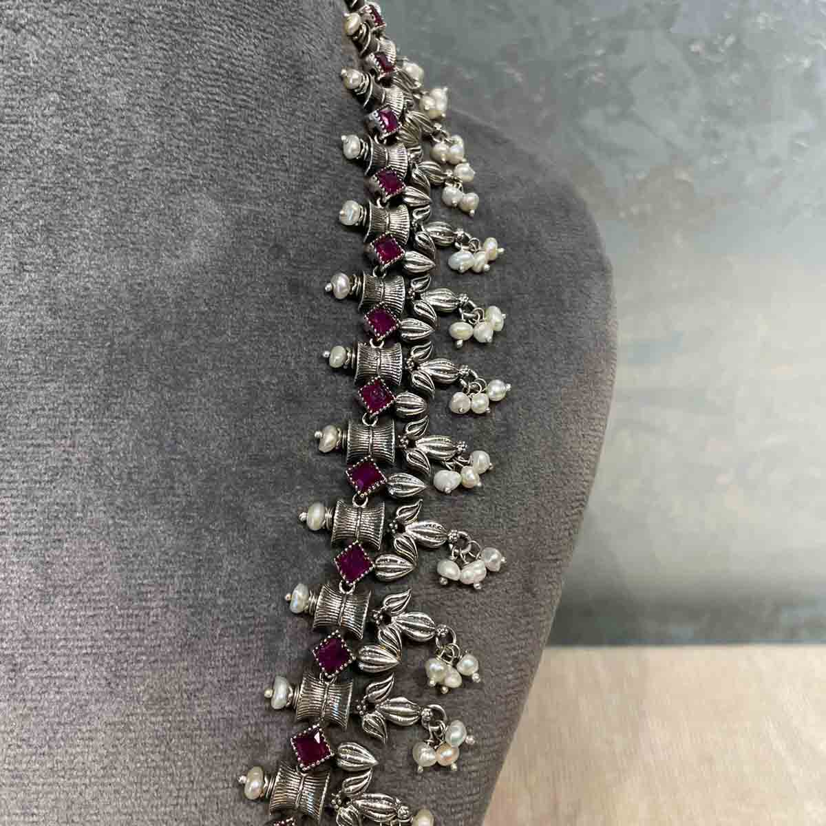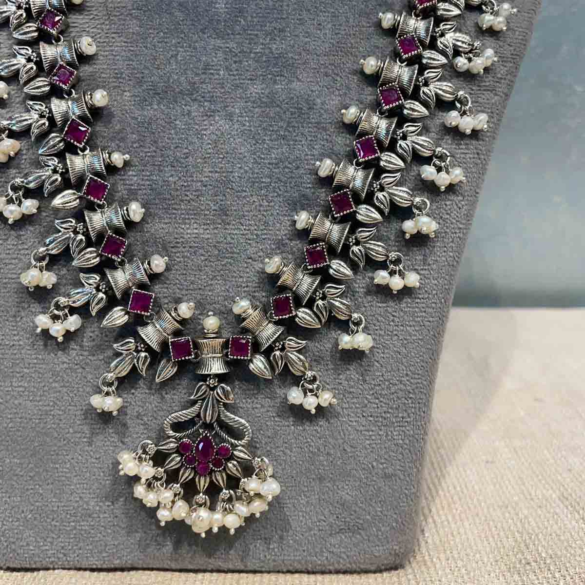 This magnificent piece of handmade art is set with stones and pearls in 92.5 pure silver.