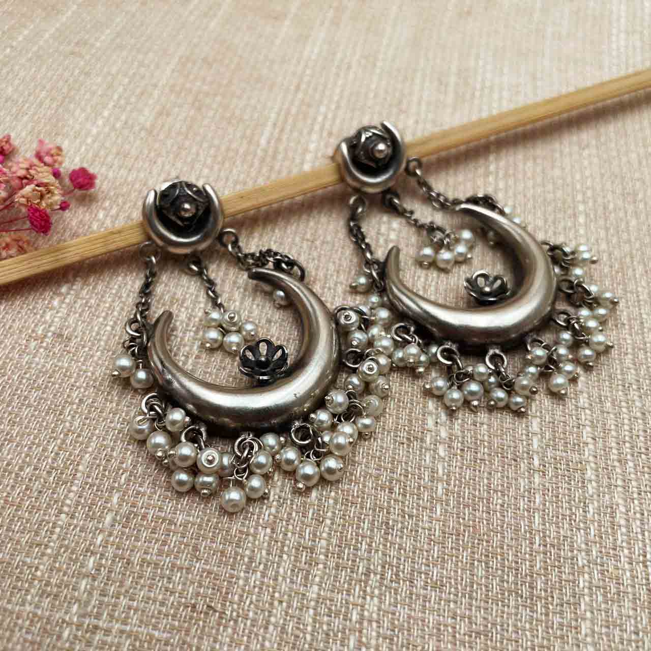 Beautifully crafted chandbali with bunch of pearls strung in it.