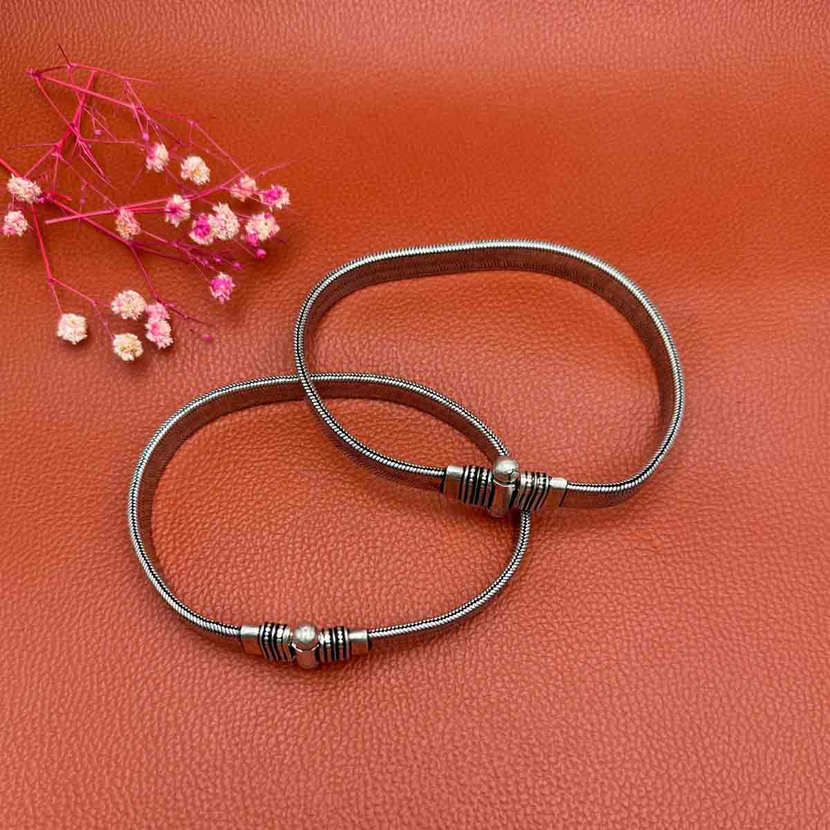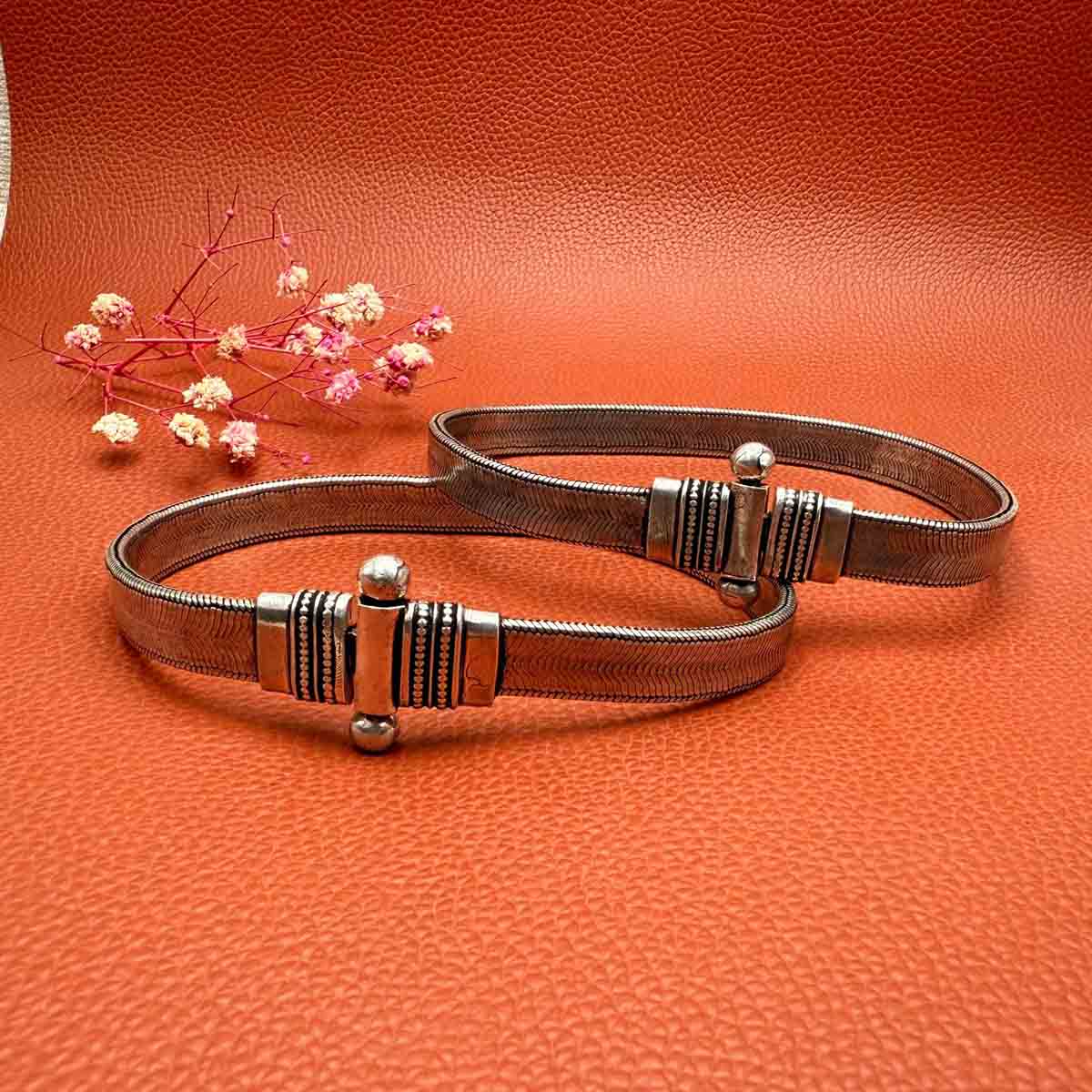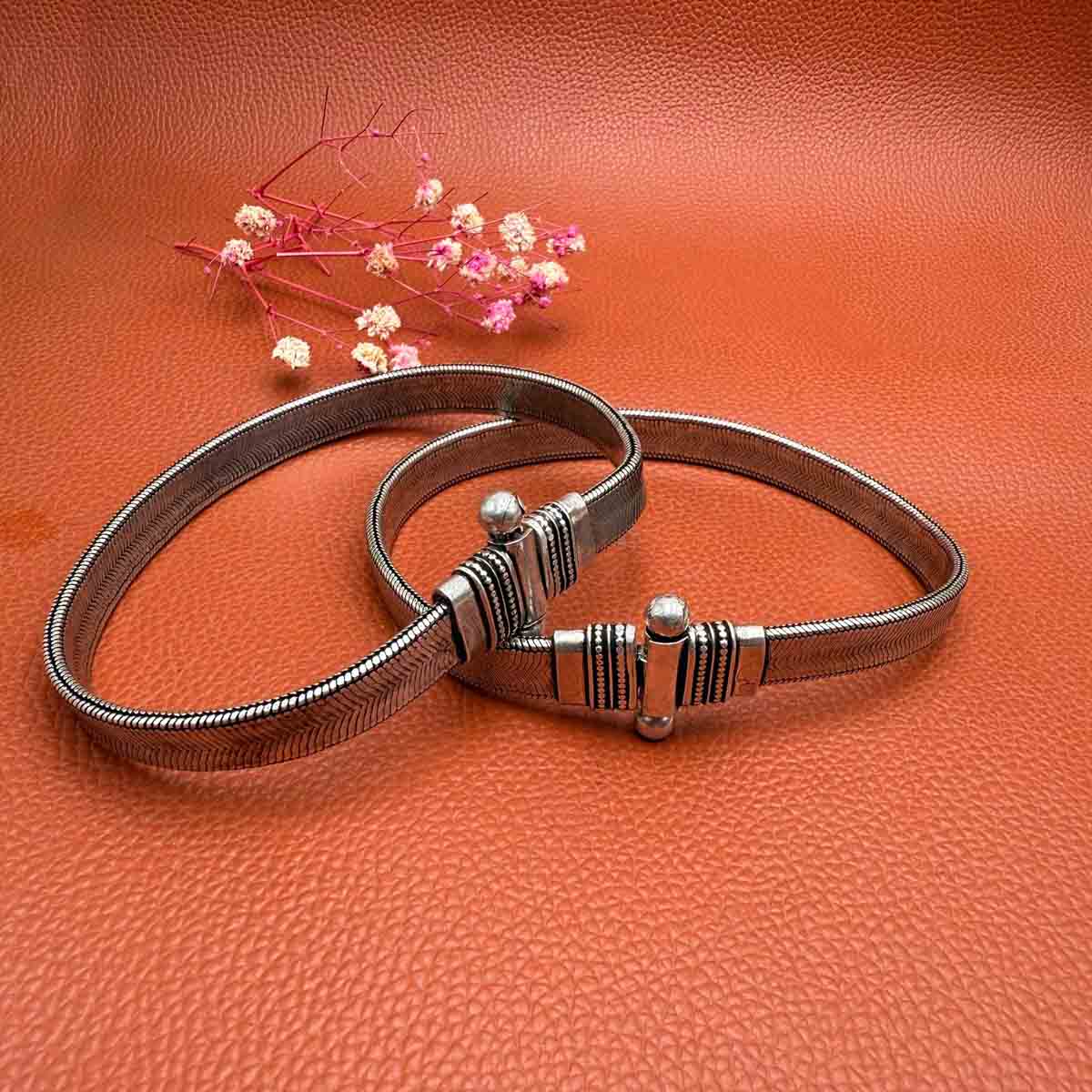 Silver tribal payal with a heavy thick flat bold silver chain with a lock.