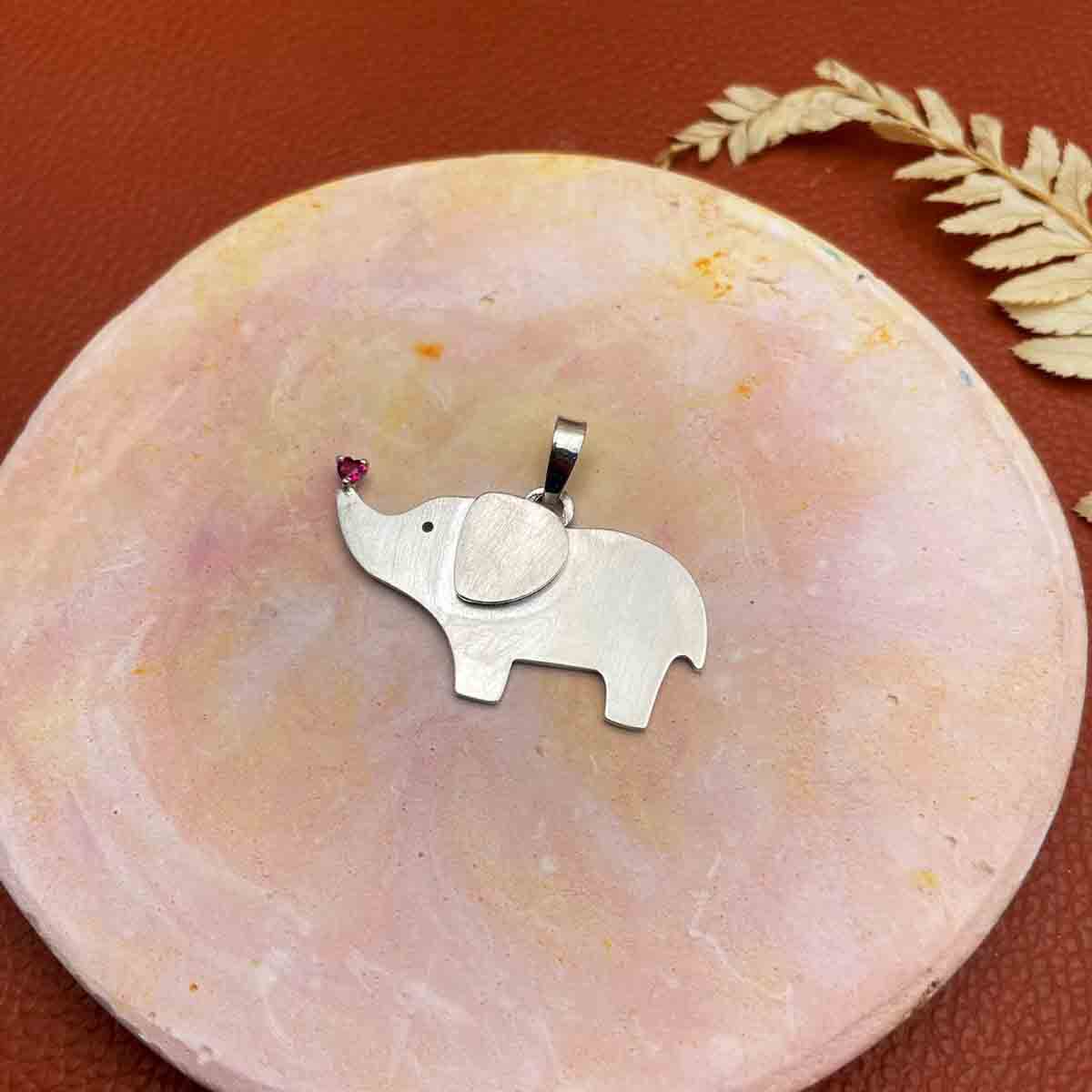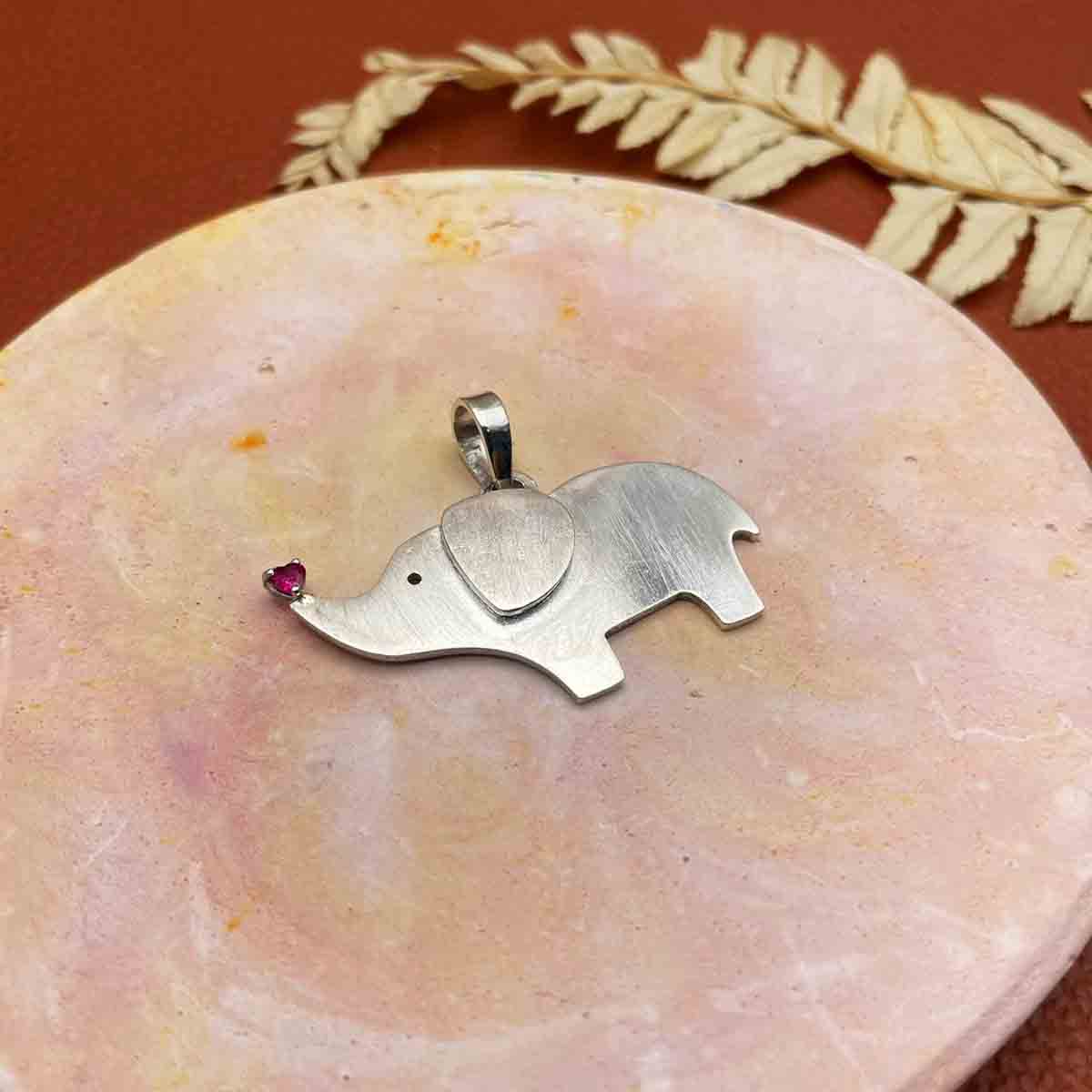 This cute baby elephant pendant with pink stone set on its trunk, is set in 92.5 silver.