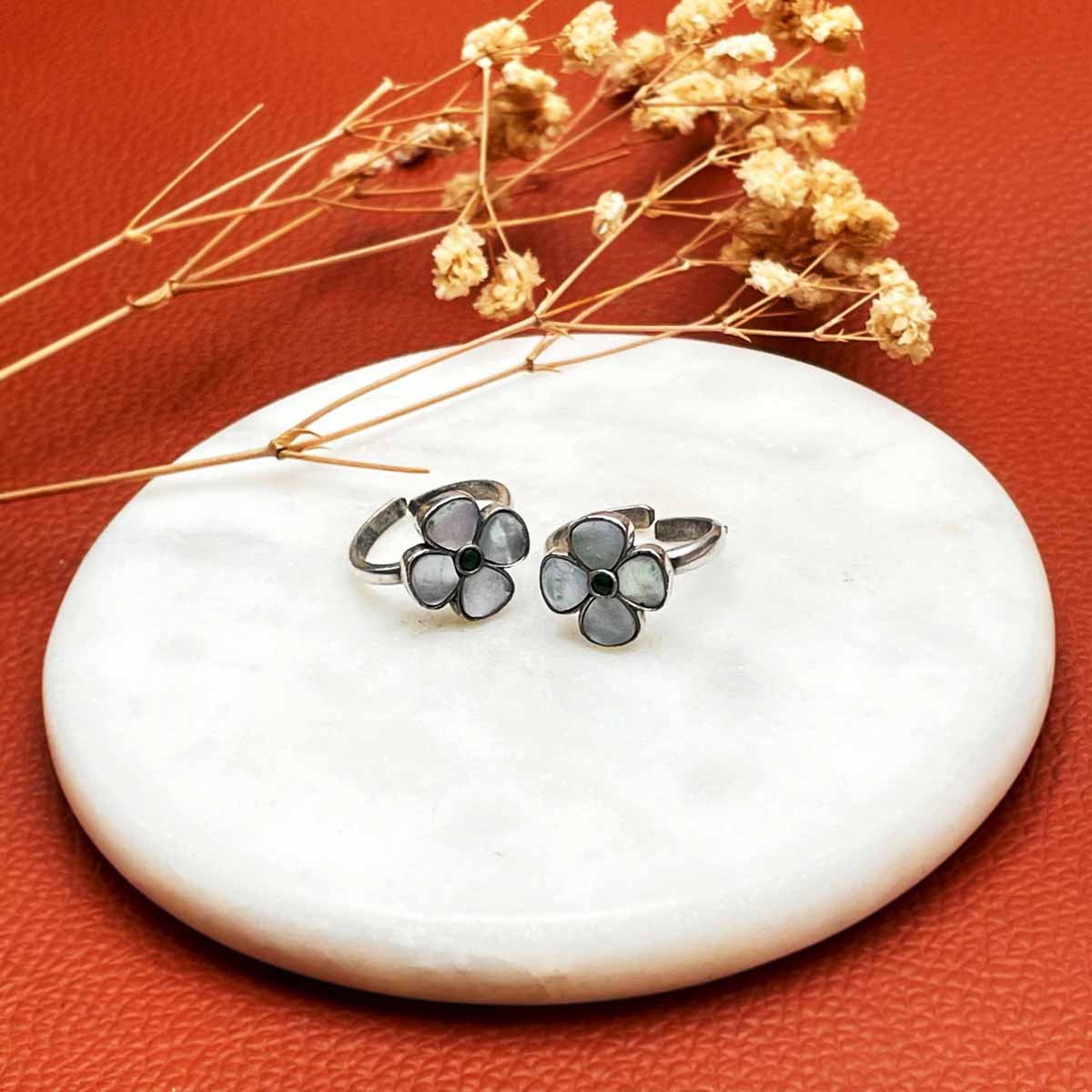 Kundani Flower Silver Toe ring – Mother of Pearl