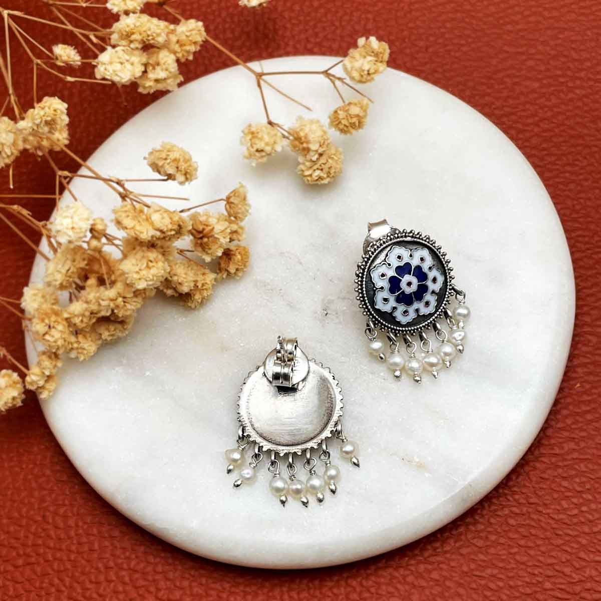 Meenakari Pearl Silver Earrings