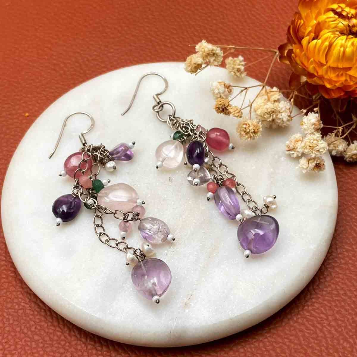 Silver stone Danglers – Pinks